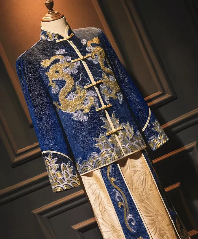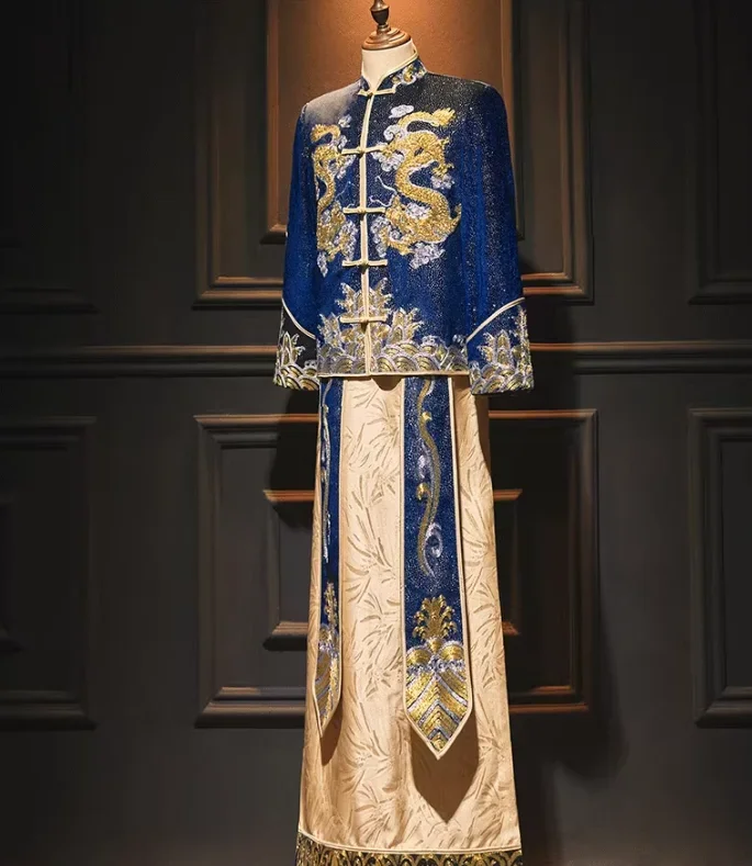 Groom Xiuhe Dress Chinese Wedding Dress Men'S Chinese Style Tibetan Blue Tang Dress Dragon And Phoenix Coat
