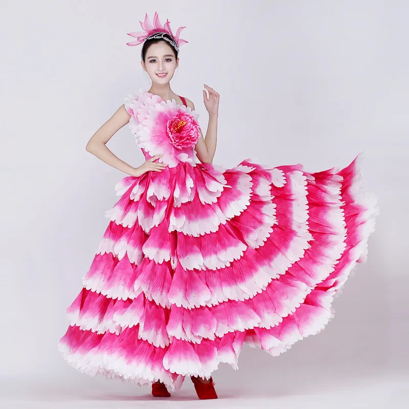 New Women Petal Spanish Dress Opening Dance Costume Bullfighting Flamengo Dress Gypsy Flamenco 360/540 Degree Performance Dress