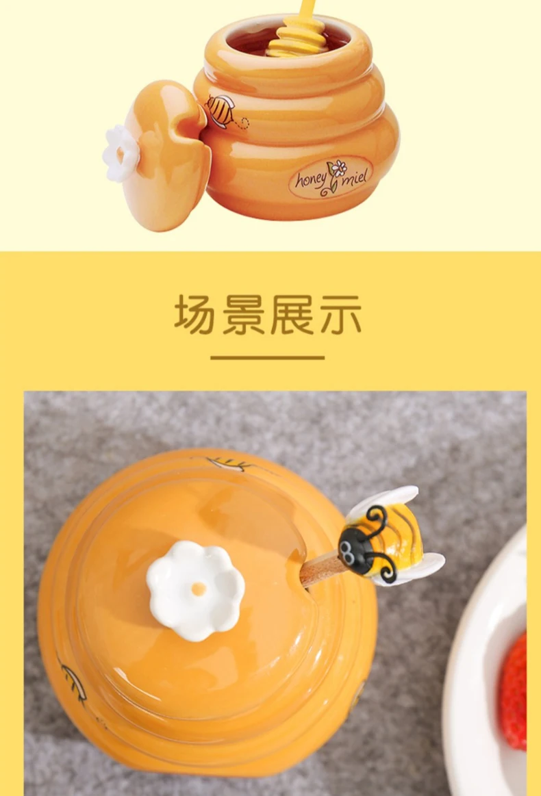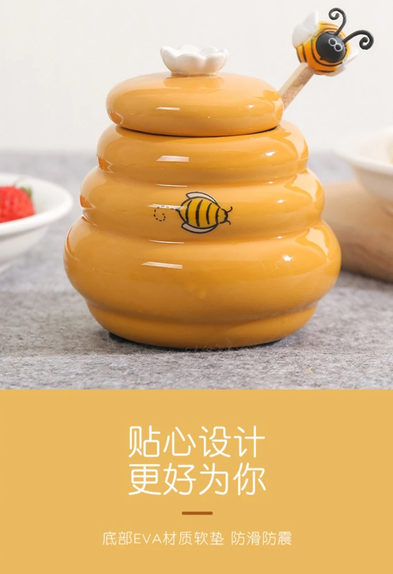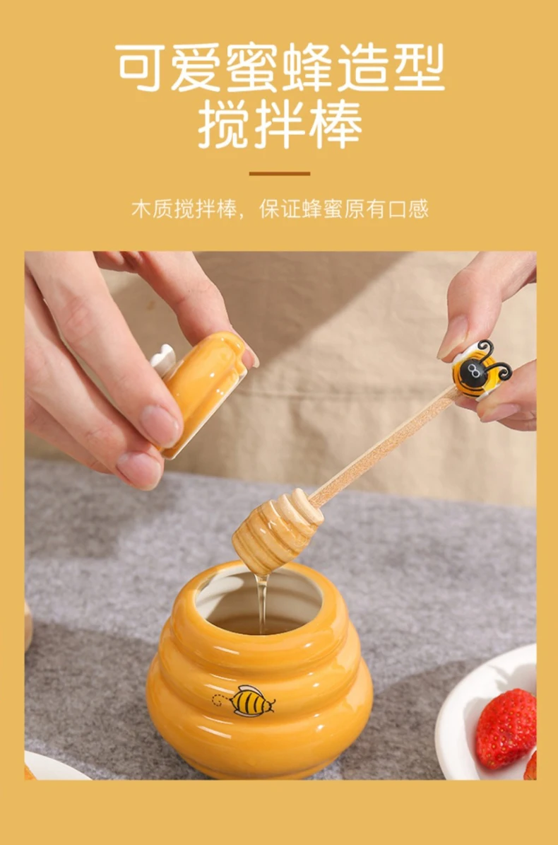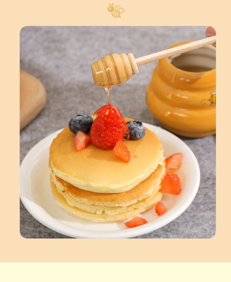 Joie Ceramic Beehive Honey Pot and Wooden Dipper honey jar with lid Honey Stir Bar For Honey Jar Supplies Kitchen Accessories