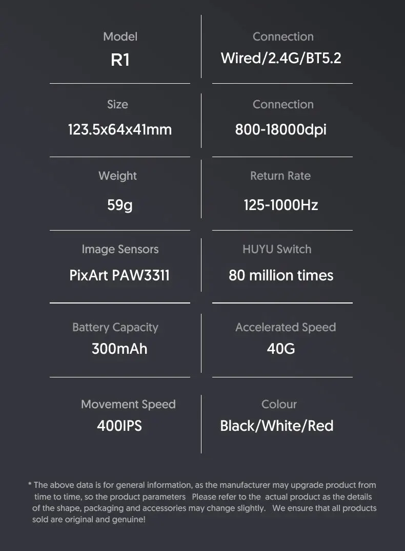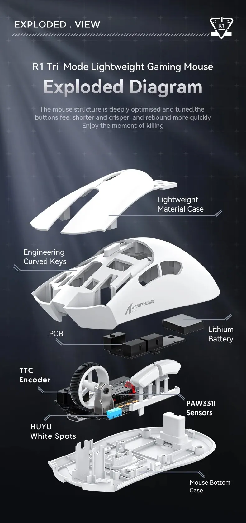 • Superlight Design :The Attack Shark R1 gaming mouse is designed with a superlight feature, making it easy to handle and maneuver during gameplay.